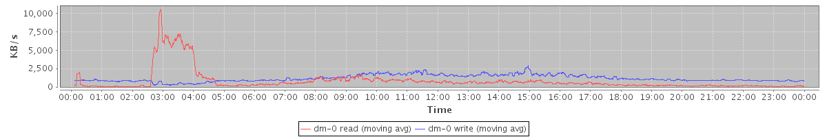 avg(dm-2 read) = 5.43 avg(dm-2 write) = 26.24