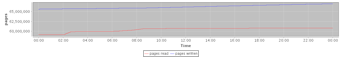 avg(pages read) = 60400164.10 avg(pages written) = 66242323.93