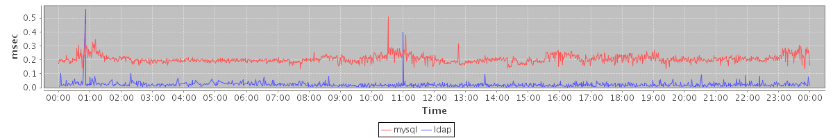 avg(mysql) = 0.21 avg(ldap) = 0.02