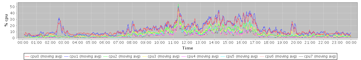 avg(cpu0) = 1.15 avg(cpu1) = 1.07 avg(cpu2) = 0.82 avg(cpu3) = 0.75 avg(cpu4) = 0.56 avg(cpu5) = 0.52 avg(cpu6) = 0.42 avg(cpu7) = 0.40