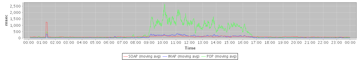Host zm02.stanford.edu: Mailboxd: Response Time by Client Protocol