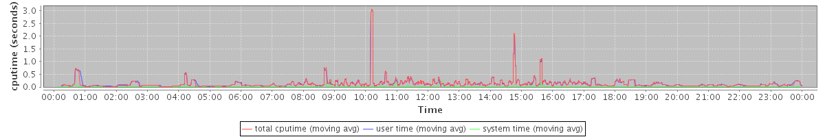 avg(total cputime) = 0.08 avg(user time) = 0.08 avg(system time) = 0.01