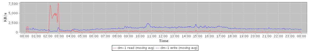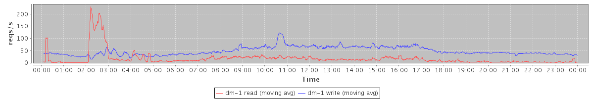 avg(dm-1 read) = 17.47 avg(dm-1 write) = 48.54