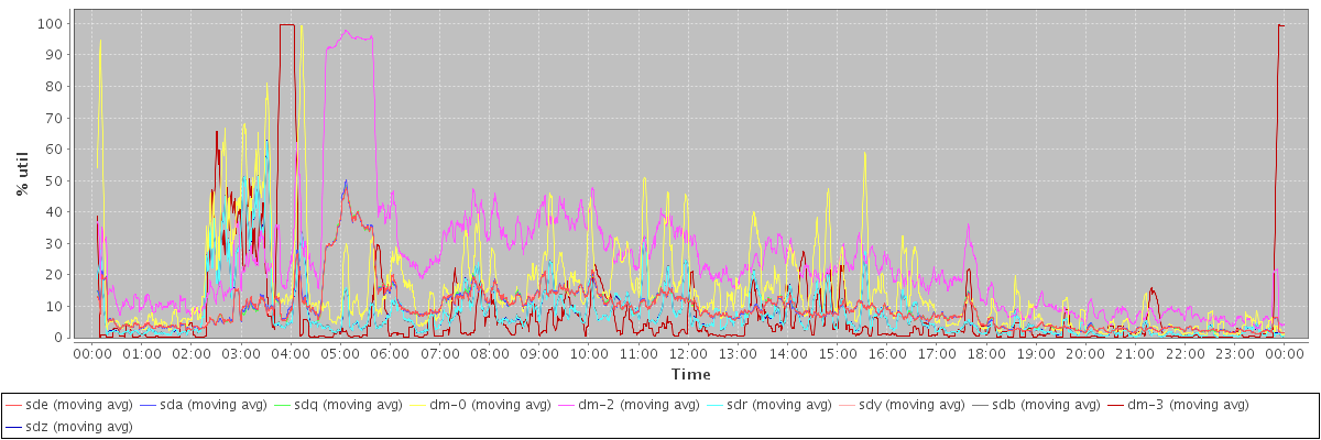 avg(sde) = 9.15 avg(sda) = 9.14 avg(sdq) = 9.13 avg(dm-0) = 15.43 avg(dm-2) = 24.08 avg(sdr) = 7.58 avg(sdy) = 9.13 avg(sdb) = 7.59 avg(dm-3) = 8.21 avg(sdz) = 7.58