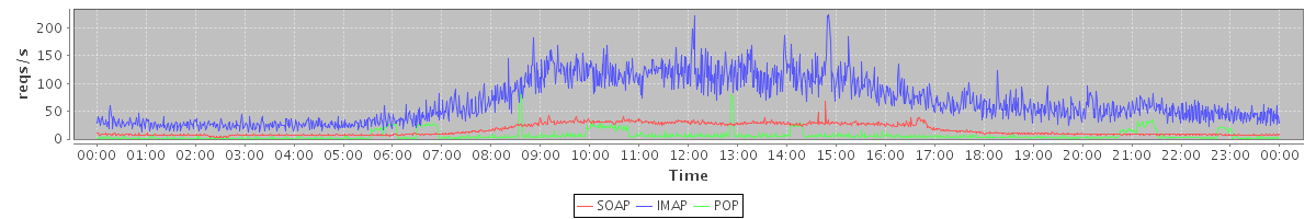 Host zm08.stanford.edu: Mailboxd: Request Rate by Client Protocol