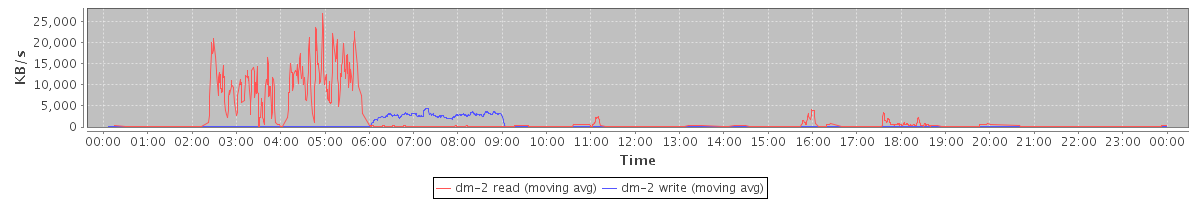 avg(dm-2 read) = 24.21 avg(dm-2 write) = 11.14