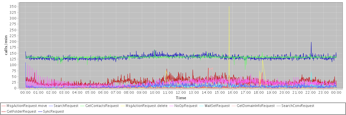 max(MsgActionRequest.move) = 69.00 max(SearchRequest) = 110.00 max(GetContactsRequest) = 166.00 max(MsgActionRequest.delete) = 351.00 max(NoOpRequest) = 102.00 max(WaitSetRequest) = 68.00 max(GetDomainInfoRequest) = 89.00 max(SearchConvRequest) = 35.00 max(GetFolderRequest) = 87.00 max(SyncRequest) = 198.00
