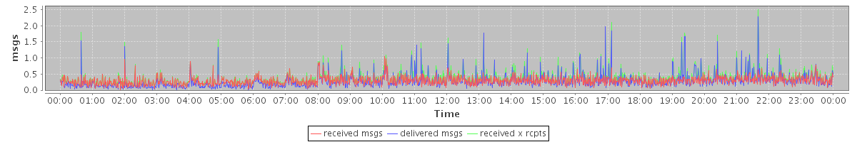 avg(received msgs) = 0.29 avg(delivered msgs) = 0.27 avg(received x rcpts) = 0.36