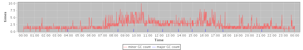 avg(minor GC count) = 2.33 avg(major GC count) = 0.01