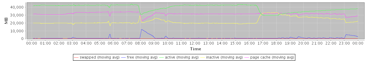 avg(swapped) = 3.47 avg(free) = 1081.45 avg(active) = 39310.69 avg(inactive) = 22490.33 avg(page cache) = 31581.38