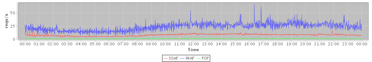 Host zm06.stanford.edu: Mailboxd: Request Rate by Client Protocol