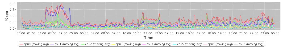 avg(cpu0) = 0.09 avg(cpu1) = 0.21 avg(cpu2) = 0.04 avg(cpu3) = 0.05 avg(cpu4) = 0.02 avg(cpu5) = 0.02 avg(cpu6) = 0.02 avg(cpu7) = 0.02