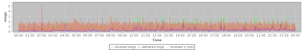 avg(received msgs) = 0.85 avg(delivered msgs) = 0.30 avg(received x rcpts) = 0.92