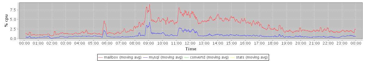 avg(mailbox) = 3.03 avg(mysql) = 0.81 avg(convertd) = 0.00 avg(stats) = 0.00