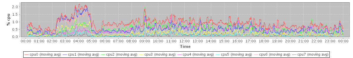 avg(cpu0) = 0.09 avg(cpu1) = 0.22 avg(cpu2) = 0.06 avg(cpu3) = 0.06 avg(cpu4) = 0.03 avg(cpu5) = 0.03 avg(cpu6) = 0.04 avg(cpu7) = 0.04