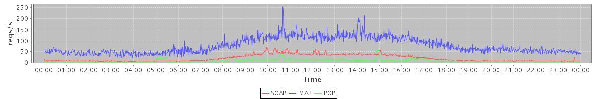 Host zm05.stanford.edu: Mailboxd: Request Rate by Client Protocol