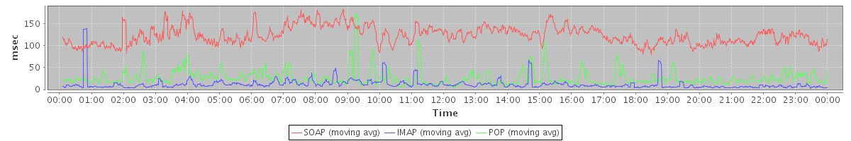Host zm05.stanford.edu: Mailboxd: Response Time by Client Protocol