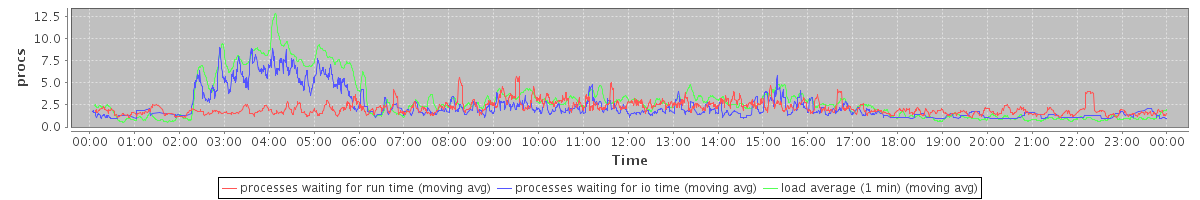 avg(processes waiting for run time) = 1.54 avg(processes waiting for io time) = 1.72 avg(load average (1 min)) = 2.98