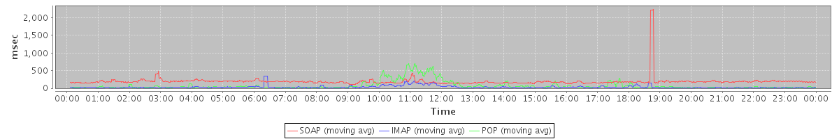 Host zm07.stanford.edu: Mailboxd: Response Time by Client Protocol