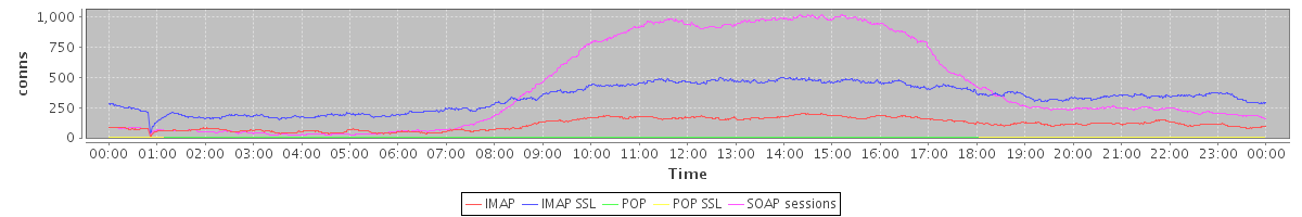avg(IMAP) = 112.16 avg(IMAP SSL) = 330.65 avg(POP) = 0.07 avg(POP SSL) = 0.50 avg(SOAP sessions) = 414.01