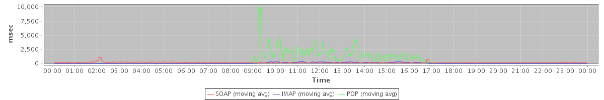 Host zm21.stanford.edu: Mailboxd: Response Time by Client Protocol