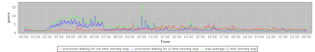avg(processes waiting for run time) = 1.84 avg(processes waiting for io time) = 1.73 avg(load average (1 min)) = 3.46