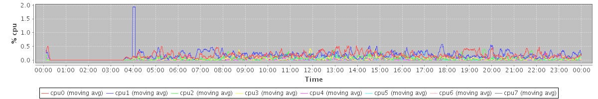 avg(cpu0) = 0.10 avg(cpu1) = 0.08 avg(cpu2) = 0.04 avg(cpu3) = 0.03 avg(cpu4) = 0.01 avg(cpu5) = 0.01 avg(cpu6) = 0.01 avg(cpu7) = 0.00