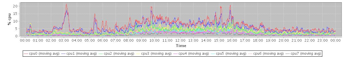 avg(cpu0) = 0.16 avg(cpu1) = 0.18 avg(cpu2) = 0.07 avg(cpu3) = 0.05 avg(cpu4) = 0.03 avg(cpu5) = 0.03 avg(cpu6) = 0.02 avg(cpu7) = 0.02