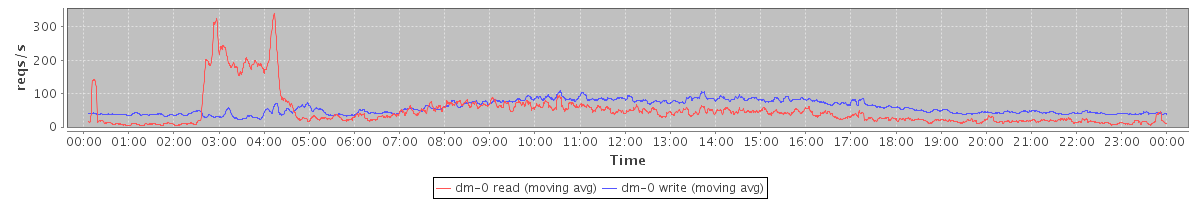 avg(dm-1 read) = 875.02 avg(dm-1 write) = 492.21