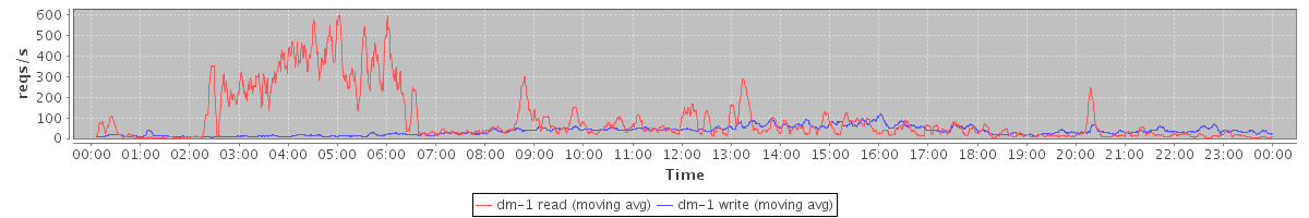 avg(dm-1 read) = 1580.61 avg(dm-1 write) = 608.36