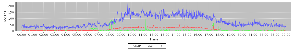 avg(IMAP) = 148.41 avg(IMAP SSL) = 951.62 avg(POP) = 0.13 avg(POP SSL) = 4.16 avg(SOAP sessions) = 770.78