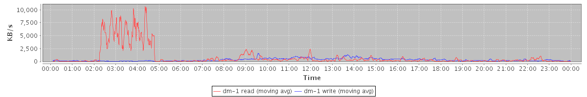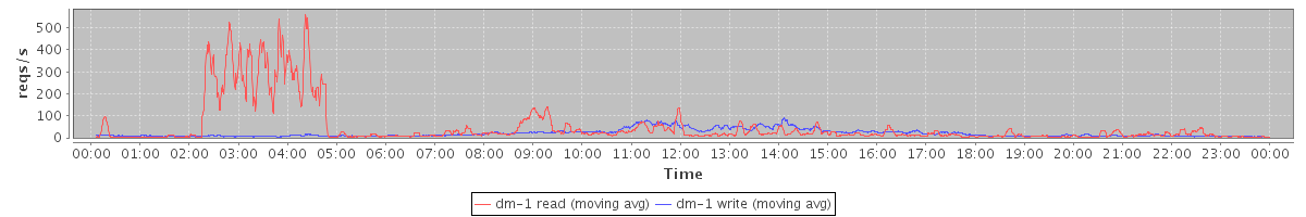 avg(dm-1 read) = 854.24 avg(dm-1 write) = 338.11