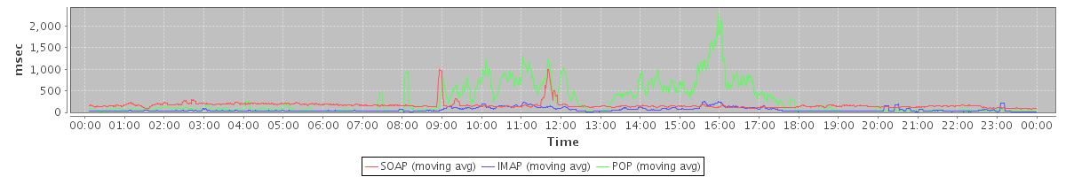 Host zm01.stanford.edu: Mailboxd: Response Time by Client Protocol