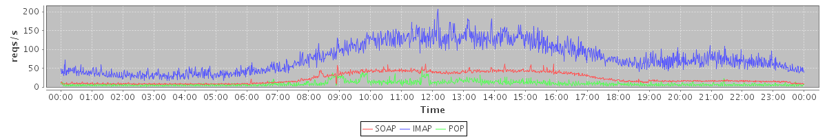 Host zm05.stanford.edu: Mailboxd: Request Rate by Client Protocol