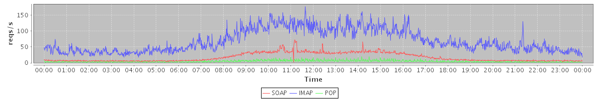 Host zm07.stanford.edu: Mailboxd: Request Rate by Client Protocol
