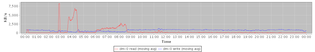avg(dm-2 read) = 18.43 avg(dm-2 write) = 10.76