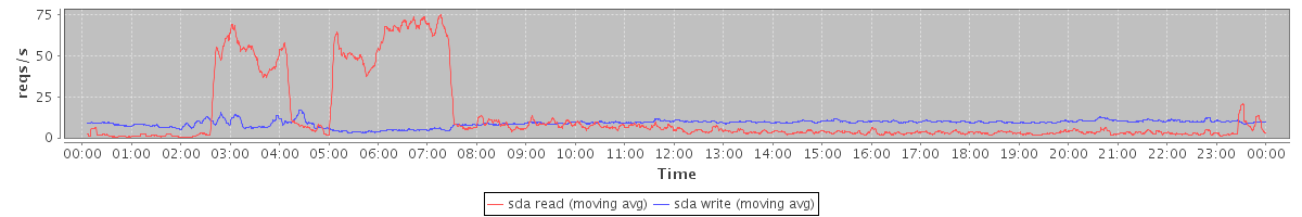 avg(sda read) = 281.39 avg(sda write) = 196.43