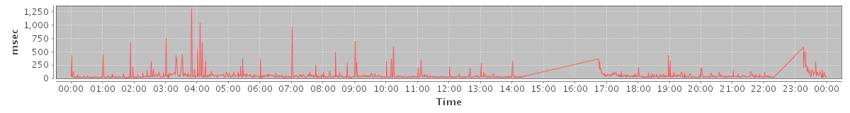 avg(AutoCompleteRequest) = 220.53 avg(SendMsgRequest) = 554.80 avg(DeleteAccountRequest) = 4713.00 avg(BackupQueryRequest) = 325.50 avg(GetAggregateQuotaUsageOnServerRequest) = 565.00 avg(BounceMsgRequest) = 123.00 avg(FolderActionRequest.empty) = 310.00 avg(BrowseRequest) = 181.50 avg(CreateContactRequest) = 253.00 avg(GetQuotaUsageRequest) = 609.00
