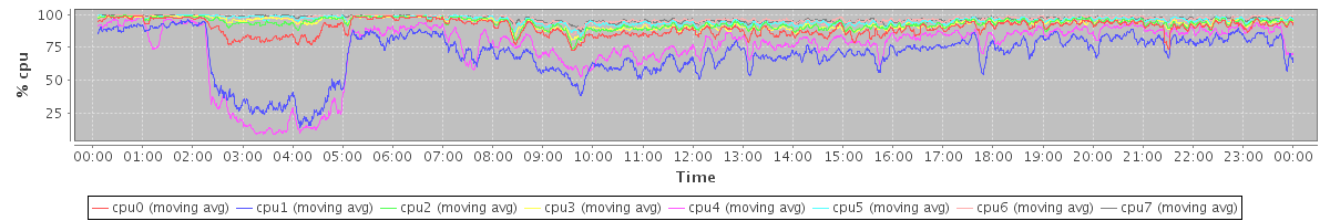 avg(cpu0) = 0.95 avg(cpu1) = 1.08 avg(cpu2) = 0.69 avg(cpu3) = 0.68 avg(cpu4) = 0.90 avg(cpu5) = 0.48 avg(cpu6) = 0.36 avg(cpu7) = 0.34