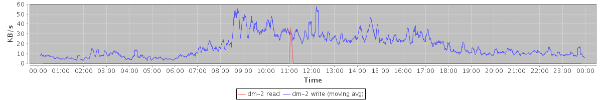 avg(dm-3 read) = 0.28 avg(dm-3 write) = 7.43