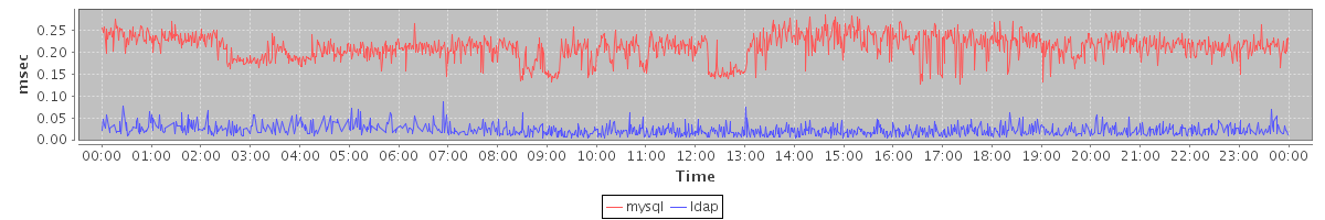 avg(mysql) = 0.21 avg(ldap) = 0.02