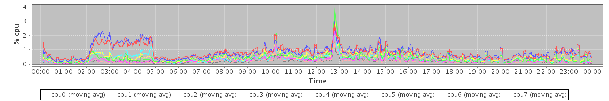 avg(cpu0) = 0.11 avg(cpu1) = 0.12 avg(cpu2) = 0.05 avg(cpu3) = 0.06 avg(cpu4) = 0.02 avg(cpu5) = 0.04 avg(cpu6) = 0.01 avg(cpu7) = 0.01