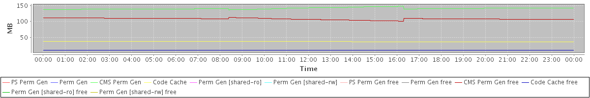 avg(PS Perm Gen) = 0.00 avg(Perm Gen) = 0.00 avg(CMS Perm Gen) = 140.75 avg(Code Cache) = 36.70 avg(Perm Gen [shared-ro]) = 0.00 avg(Perm Gen [shared-rw]) = 0.00 avg(PS Perm Gen free) = 0.00 avg(Perm Gen free) = 0.00 avg(CMS Perm Gen free) = 107.90 avg(Code Cache free) = 9.93 avg(Perm Gen [shared-ro] free) = 0.00 avg(Perm Gen [shared-rw] free) = 0.00