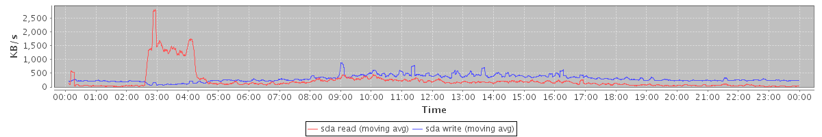 avg(sda read) = 233.19 avg(sda write) = 306.41