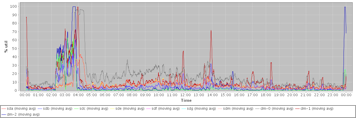 avg(sda) = 6.47 avg(sdb) = 5.48 avg(sdc) = 3.14 avg(sde) = 6.46 avg(sdf) = 5.48 avg(sdg) = 3.10 avg(sdm) = 6.45 avg(dm-0) = 16.90 avg(dm-1) = 11.27 avg(dm-2) = 6.06
