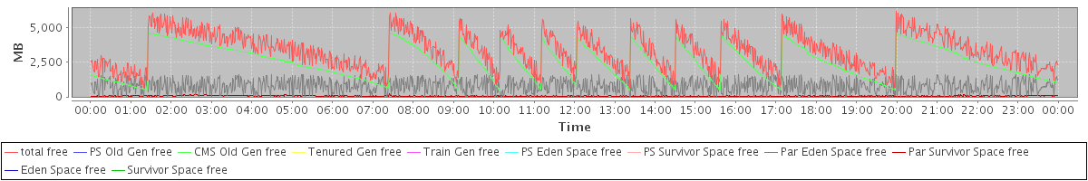 avg(total free) = 3343.94 avg(PS Old Gen free) = 0.00 avg(CMS Old Gen free) = 2482.54 avg(Tenured Gen free) = 0.00 avg(Train Gen free) = 0.00 avg(PS Eden Space free) = 0.00 avg(PS Survivor Space free) = 0.00 avg(Par Eden Space free) = 800.80 avg(Par Survivor Space free) = 60.60 avg(Eden Space free) = 0.00 avg(Survivor Space free) = 0.00