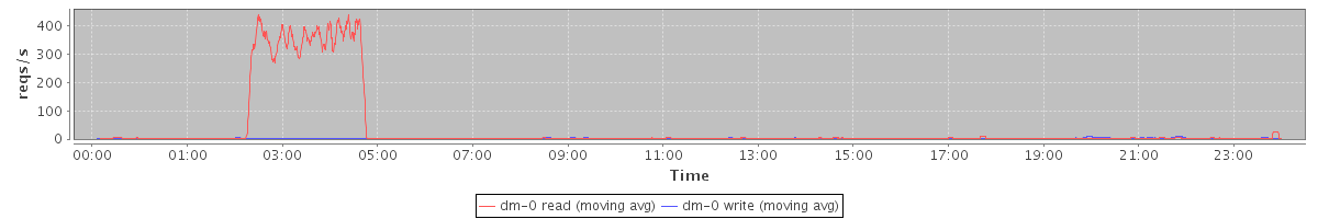 avg(dm-1 read) = 31.21 avg(dm-1 write) = 479.37