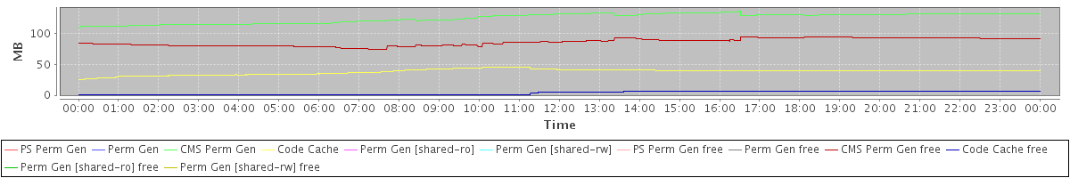 avg(PS Perm Gen) = 0.00 avg(Perm Gen) = 0.00 avg(CMS Perm Gen) = 125.88 avg(Code Cache) = 38.34 avg(Perm Gen [shared-ro]) = 0.00 avg(Perm Gen [shared-rw]) = 0.00 avg(PS Perm Gen free) = 0.00 avg(Perm Gen free) = 0.00 avg(CMS Perm Gen free) = 86.57 avg(Code Cache free) = 3.59 avg(Perm Gen [shared-ro] free) = 0.00 avg(Perm Gen [shared-rw] free) = 0.00