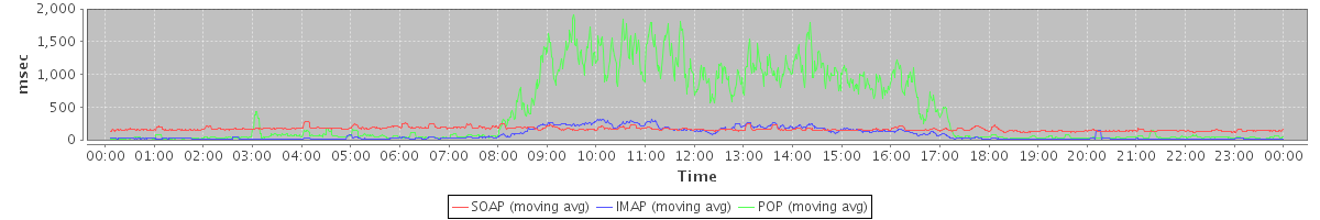Host zm04.stanford.edu: Mailboxd: Response Time by Client Protocol