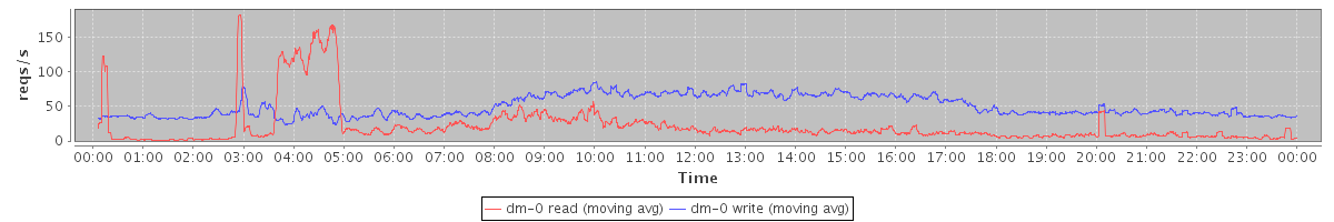 avg(dm-0 read) = 21.54 avg(dm-0 write) = 49.75
